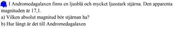 Börja med att definiera vad som menas med apparent magnitud och absolut magnitud.