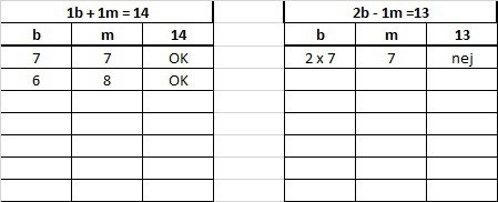 vilket ger att mutter=14-9=5 och (använd u2) bult=42-14-5=23