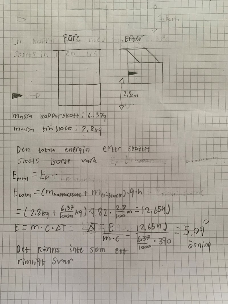 Mekaniska energin före = mv2/2 för skottet