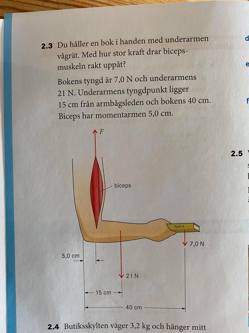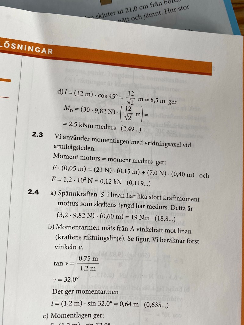 f = (3,15 Nm + 2,8 Nm)/0,05 m = 5,95/0,05 N = 119 N som de har avrundat till lagom många värdesiffror och skrivit i grundpotensform (så att det syns att det är två värdesiffror, det går ju inte att se om 120 har två eller tre värdesiffror).