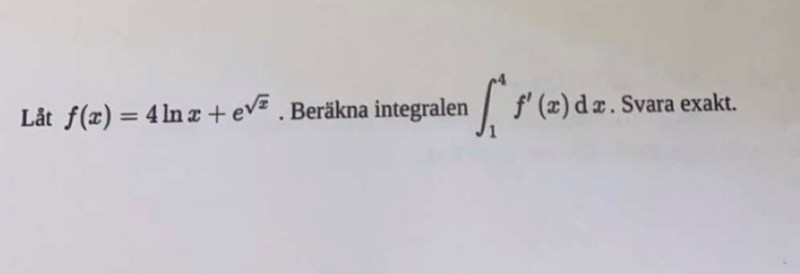Om man sätter in 4 och 1 i den primitiva funktionen får man (4ln4+e^4)-(4ln1+e^1)