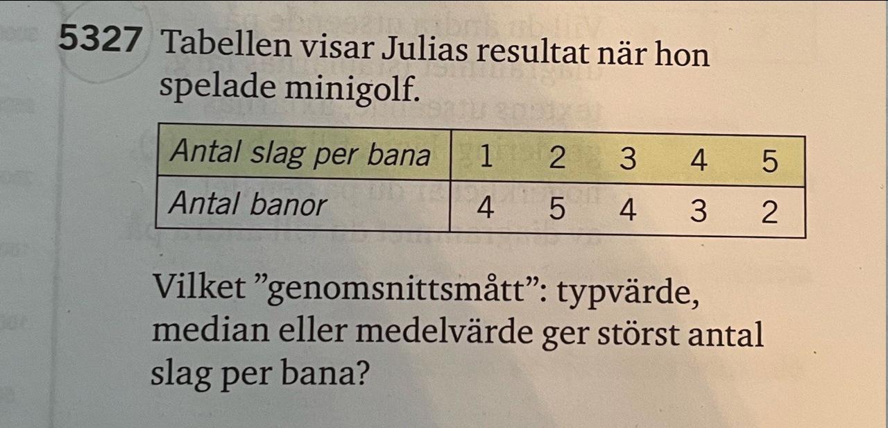 Facit säger att medelvärdet är 2,7 men jag har fått fram 3,6 samt även 9,6 när jag försökt klura ut hur man ska tyda den.