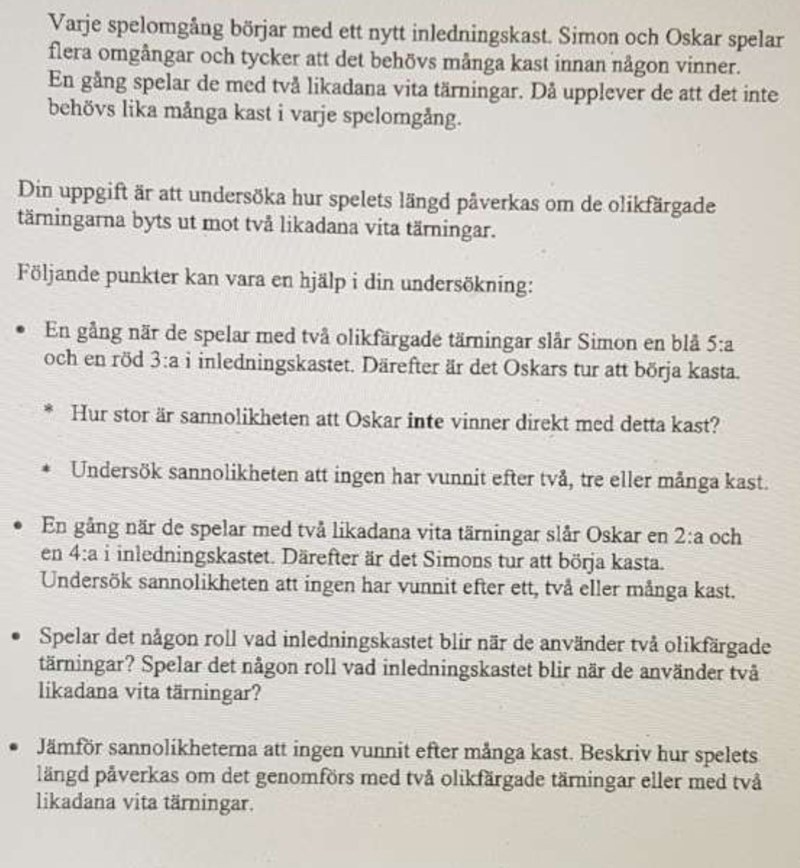 Jag har ingen aning hur man kan lösa detta problem. Det känns ju som många frågor i en. Jag förstår ju att det är svårare att vinna med olikfärgade tärningar men hur jag ska förklara det vet jag ej.