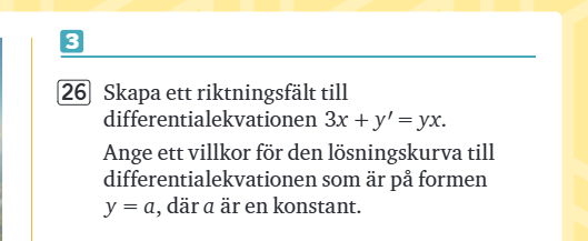 y' = x(y-3). Detta gäller då x = 0 eller då y = 3. Är detta svaret? Tänker jag rätt?