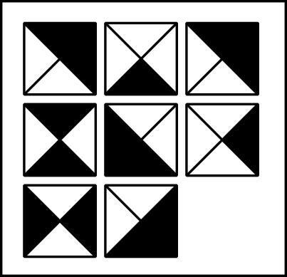Nej, what the... Mitt tänkta mönster höll inte, så oavsett om mitt svar är rätt så var tanken fel. Tänkte att visare i en ruta alltid pekar på en tom del i en angränsande ruta men det stämmer inte i övre högra hörnet...