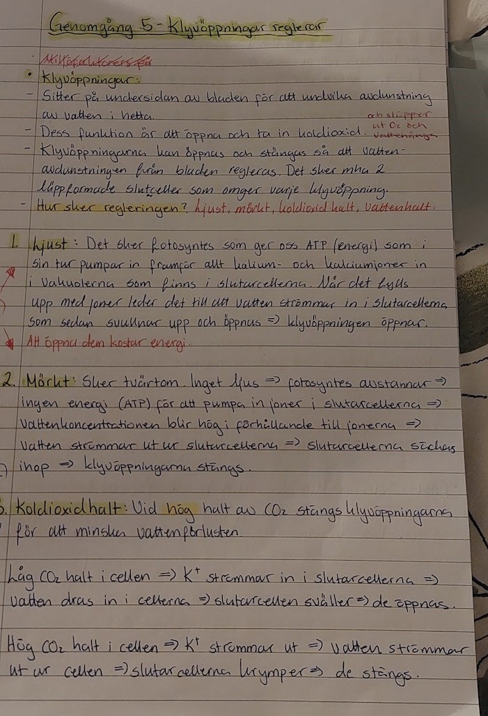 Klyvöppningarna reglerar & miljöfaktorer som påverkar fotosyntesen