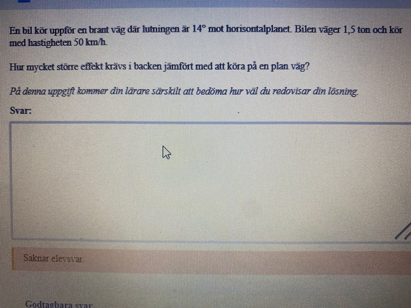 Jah förstår inte den här uppgiften. Min tanke var att rörelseenergins omvandlas till potentiell och att jag måste använda mig av det på något sätt men facit har bara räknat med potentiell. Förstår inte hur jag ska göra.