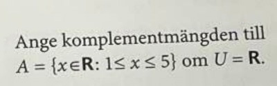 Du vill hitta de talen i R som inte uppfyller 1<=x<=5