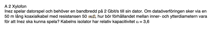 koaxialkabels inre radie vs yttre radie vid en bandbredd
