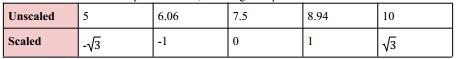 Jag ska utifrån ett intervall (5-10) och kodade variabler där motsvarar ändpunkterna räkna ut motsvarande oskalade variabler för . Hur gör jag?