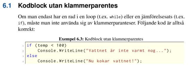 Som erfaren utvecklare avråder jag starkt från att utelämna klammerparenteserna. Det är väldigt lätt att introducera fel i sin kod.