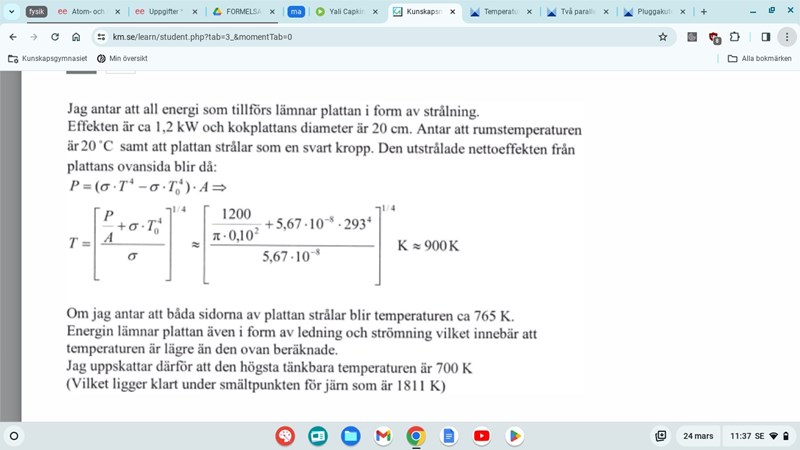 Mattehjalp skrev:Hej, jag förstår hur de löst frågan men lyckas inte förstå hur de får 765 K om bägge plattor strålar ut effekt?