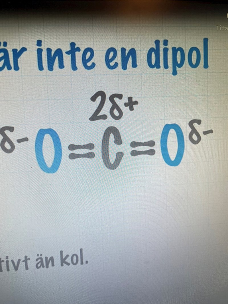 Teraeagle skrev:Det vänstra syret försöker dra kolets elektroner till vänster, medan det högra syret försöker dra kolets elektroner åt höger. Se det som ett slags dragkamp. Eftersom bägge syreatomerna är lika ”starka” (elektronegativa) rör sig inte elektronerna särskilt mycket åt endera håll. Man får alltså ingen laddningsförskjutning och således kan det inte bildas någon dipol.