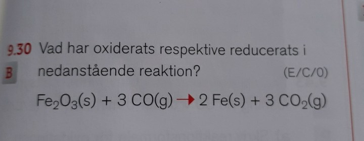 Vad menar dem med att "kolet, C, i kolmonoxiden har oxiderats"?