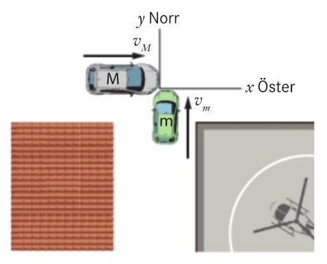 Hur rimligt är antagandet att man kan bortse från friktionskrafter under kollisionsögonblicket när två bilar kolliderar i en vägkorsning och därefter fastanr de i varandra? Anta att bilplåten trycks ihop 10 cm vid kollisionen.