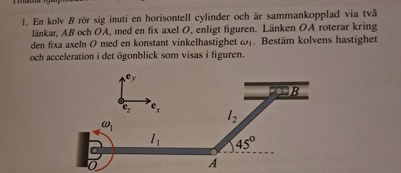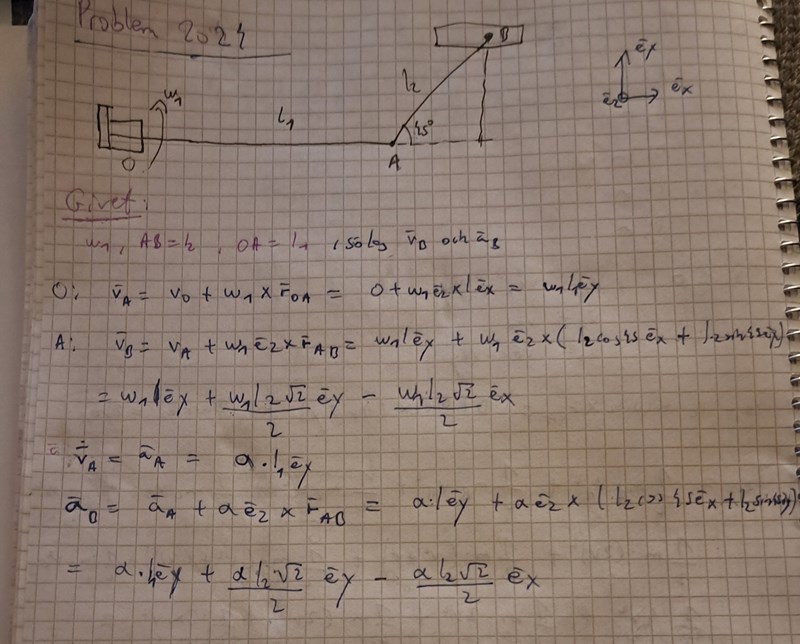 Ja jag vet, vb har jag redan fått fram och a_b blir bara derivatan av v_b. Jag vet inte om du vill att jag går så långt att jag tar reda på vinkelhastighet för länken AB för det frågades inte.