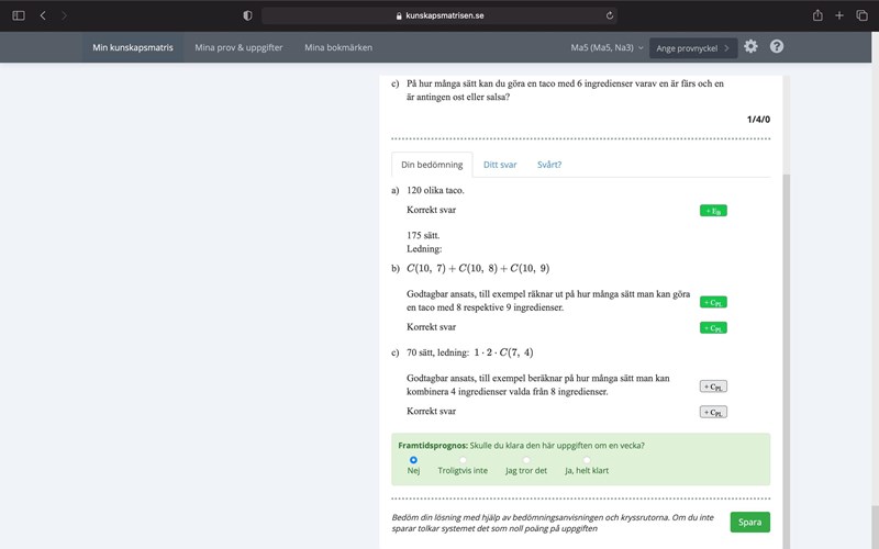 Matematik / Matte 5 1 svar 71 visningar Athena.5 behöver inte mer hjälp Avmarkera Athena.5 152 – Fd. Medlem Postad: 21 mar 2021 17:50 Kombinationer Hur tänker man på fråga C? Laguna Online 31740 Postad: 21 mar 2021 18:30 Du får nog visa hela frågan. Användare skriver Svara Du behöver Logga in eller Bli medlem först! Avbryt
