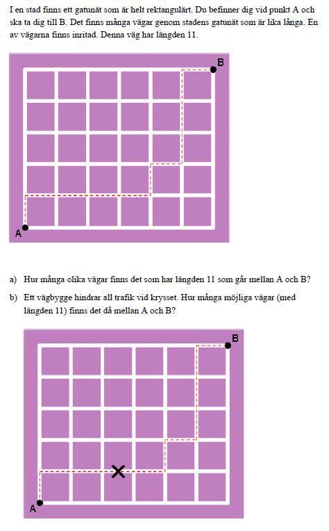 så det blir C(11,6) eller C(11,5) som är då 462 olika vägar