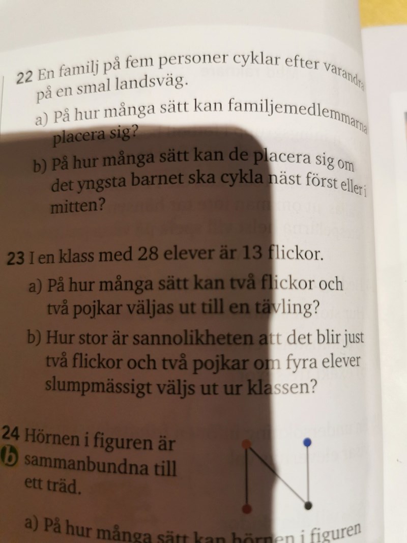 I fråga 23a) varför kan jag inte använda multiplikationsprincipen genom att skirva 15x14x13x12?