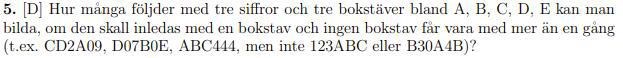 Kombinatorik - Följd med tre siffror och tre bokstäver