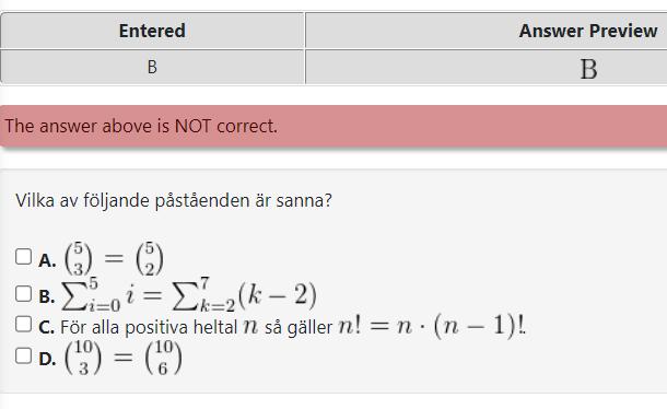 Jag vet att jag har svarat att B och C är fel då jag inte fick rätt svar då jag svarade det men jag har nu testat (B) och (B och C) men jag tänker förmodligen fel så kan jag få antingen hjälp med hur jag ska tänka kring dessa talen eller liknande :) SÅ HADE DET VARIT MYCKET VÄLKOMMET!