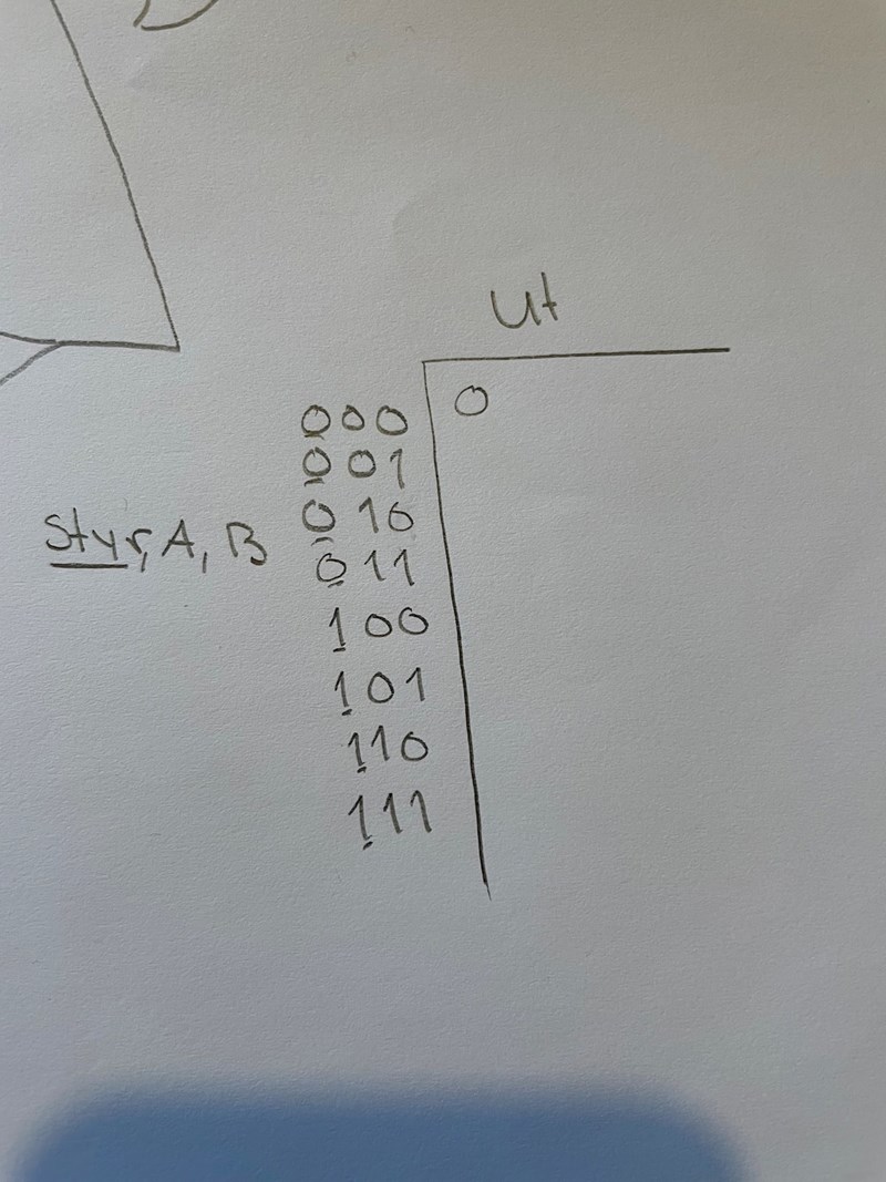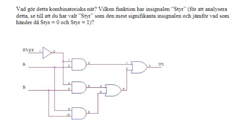 Titta på "Styr=0"-delen. Kan du uttrycka i ord vad den gör? Vad är "ut" som funktion av A och B?