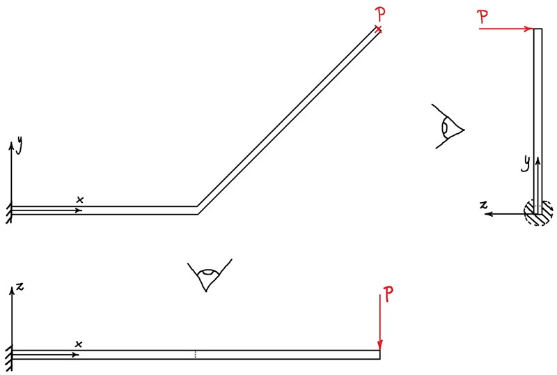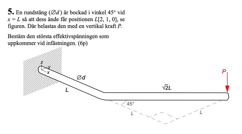 • Böjning är moment runt y-axeln så kraften PP måste ha en hävarm relativt vilken axel?