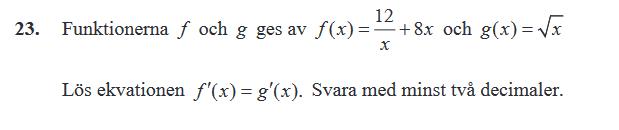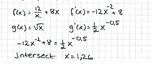 Tackar, men förstod inte riktigt. Funktionerna plottar man in men hur gör man för att skriva in prim/derivata av funktionerna och därefter kika i grafen och se intersec?