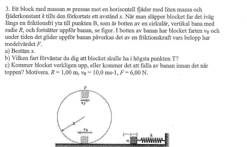 Tyvärr hjälper inte detta oss något. Jag är fundersam på om svaret på frågan är att den inte kan besvaras med given information. Det skulle vara ganska elakt om så var fallet, så klart, men jag kan inte komma på hur den kan besvaras utan numeriskt värde på antingen massan eller friktionskoefficienten.