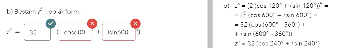 Fast har man kommit så långt i sitt matematiska lärande att man sysslar med komplexa tal så borde man räkna i radianer, men här står det ju uttryckligen att det skall vara grader.