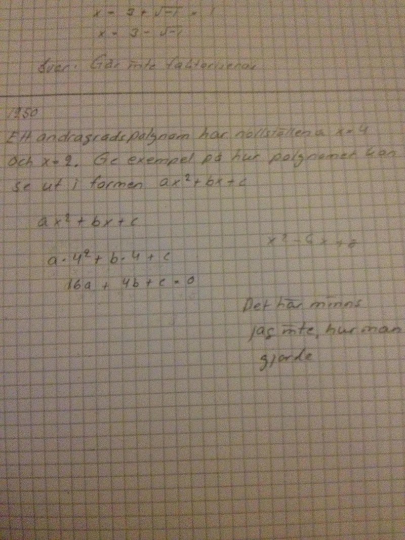 Jag kommer inte ihåg, hur man gör det här. Det var något sådant jag skrev. Jag har inte haft detta varken i A eller i B kursen.
