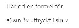 Kommer inte vidare härled formel för sin(3v) utryckt i sin v