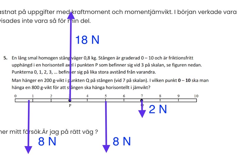 Jag har fastnat på uppgifter med kraftmoment och momentjämvikt. I början verkade vara lätt och begripligt men det visades inte vara så för min del.