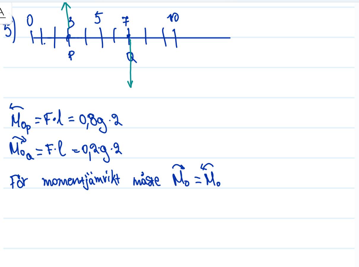 mrpotatohead skrev:Har du satt din rotationspunkt i 5:an? Känns det rimligt att det skulle bli jämvikt med två olika tunga vikter med samma avstånd från mitten?