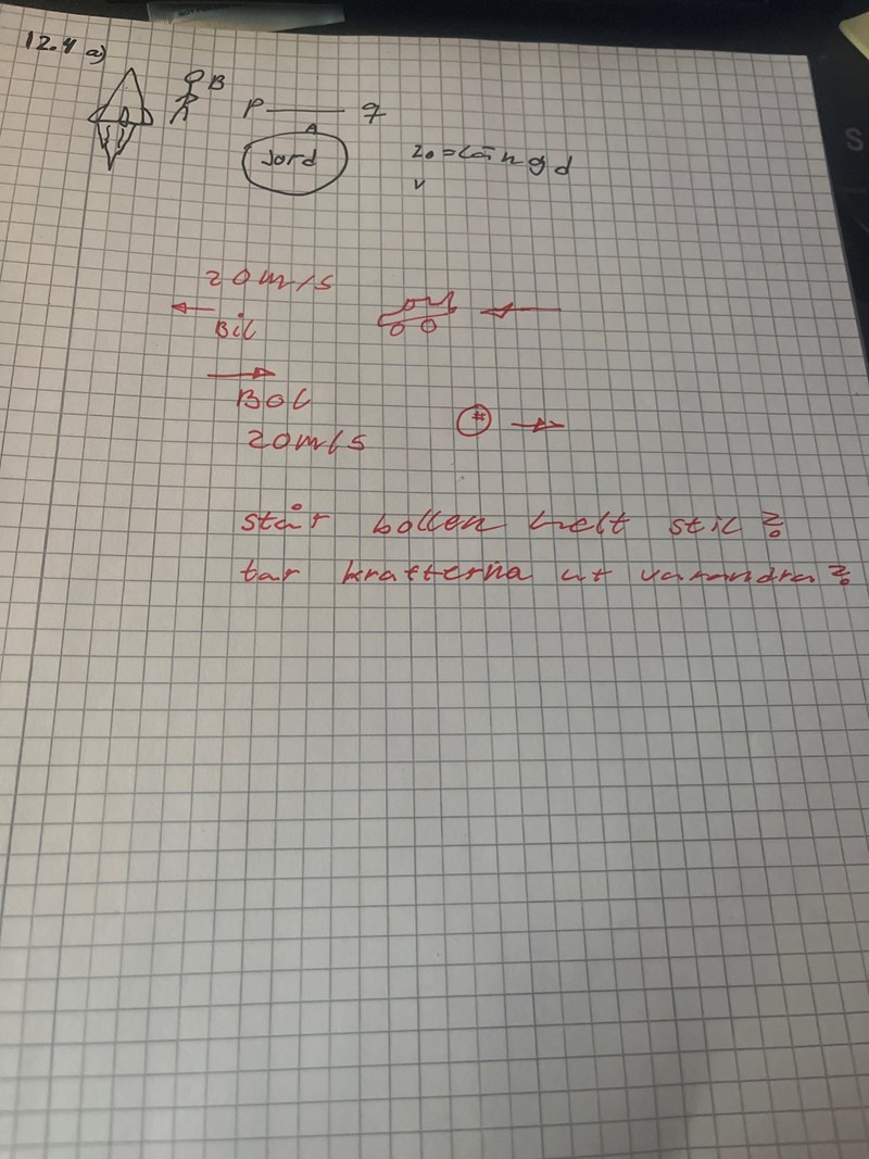 D4NIEL skrev:Hastigheterna tar ut varandra, det är inga krafter med i resonemanget.