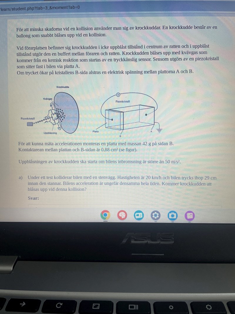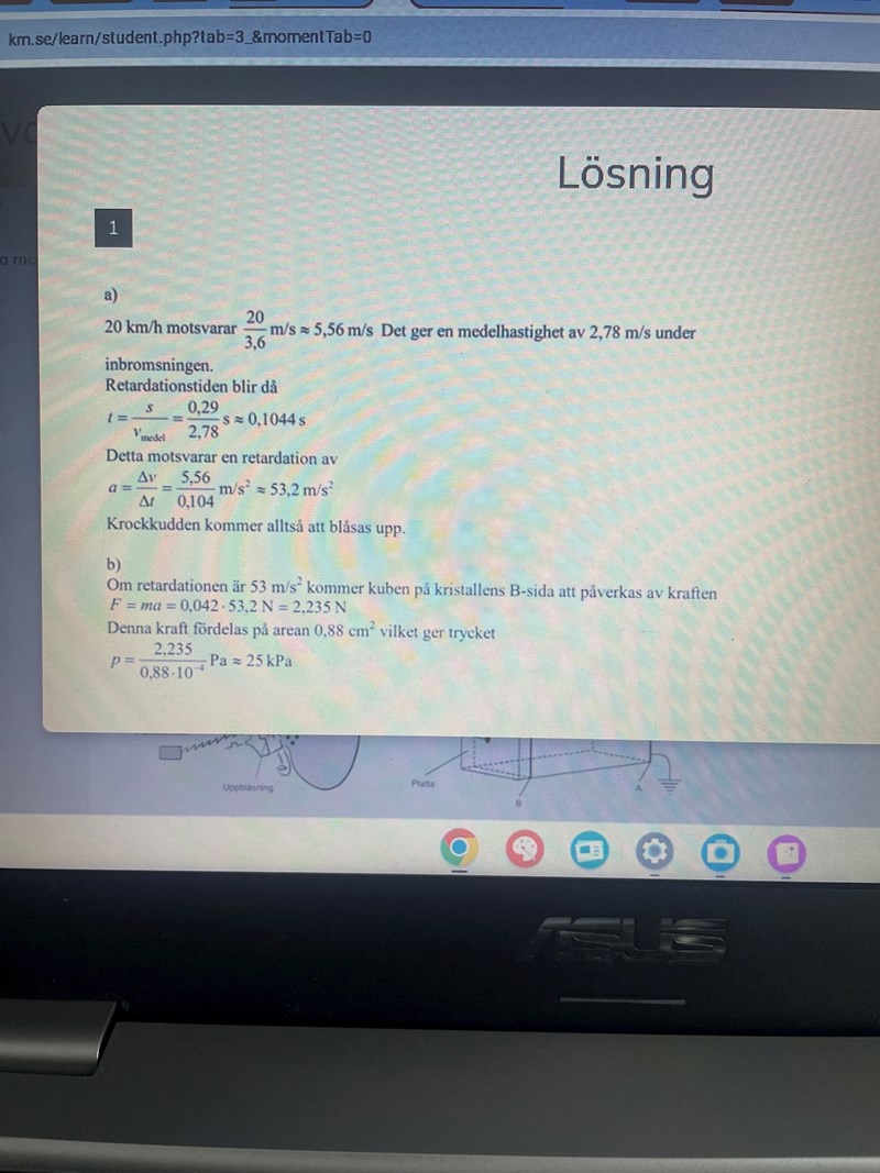 Bilen börjar med hastigheten 5,56 m/s och slutar med 0 m/s. Då är medelhastigheten (5,56 + 0)/2 m/s (om retardationen är konstant).