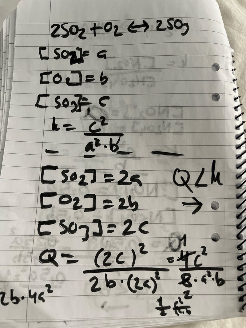 Så här löste jag frågan , jag använde mig av Q för att se ifall Q> K eller K>Q . Jag fick svaret att Q<K vilket betyder att reaktionen kommer förskjutas till höger.