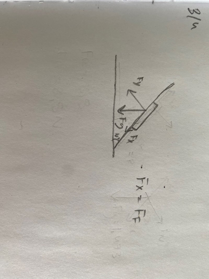 Bra att du gör en ritning, men det blir mer meningsfullt om du ritar med vinklar som är givna i uppgiften, och med skalenliga längder på kraftpilar. Använd linjal och gradskiva.