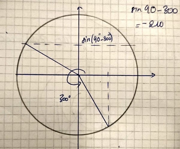 Jag undrar vad är det som pågår i andra kvadranter? Jag tänkte att det borde väl gälla för till exempel 290 (-70) och och 340 (-20), men det kommer lite busiga minus tecken i vägen som gör att det är inte lika lätt och rak på sak.