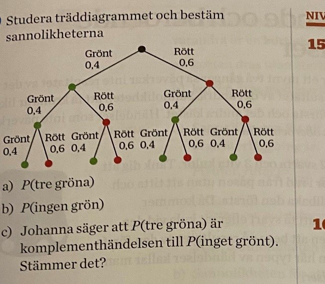 Sannolikheten för en händelse och dess komplementhändelse ska vara 100%.