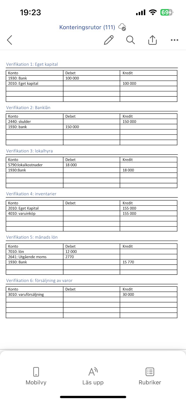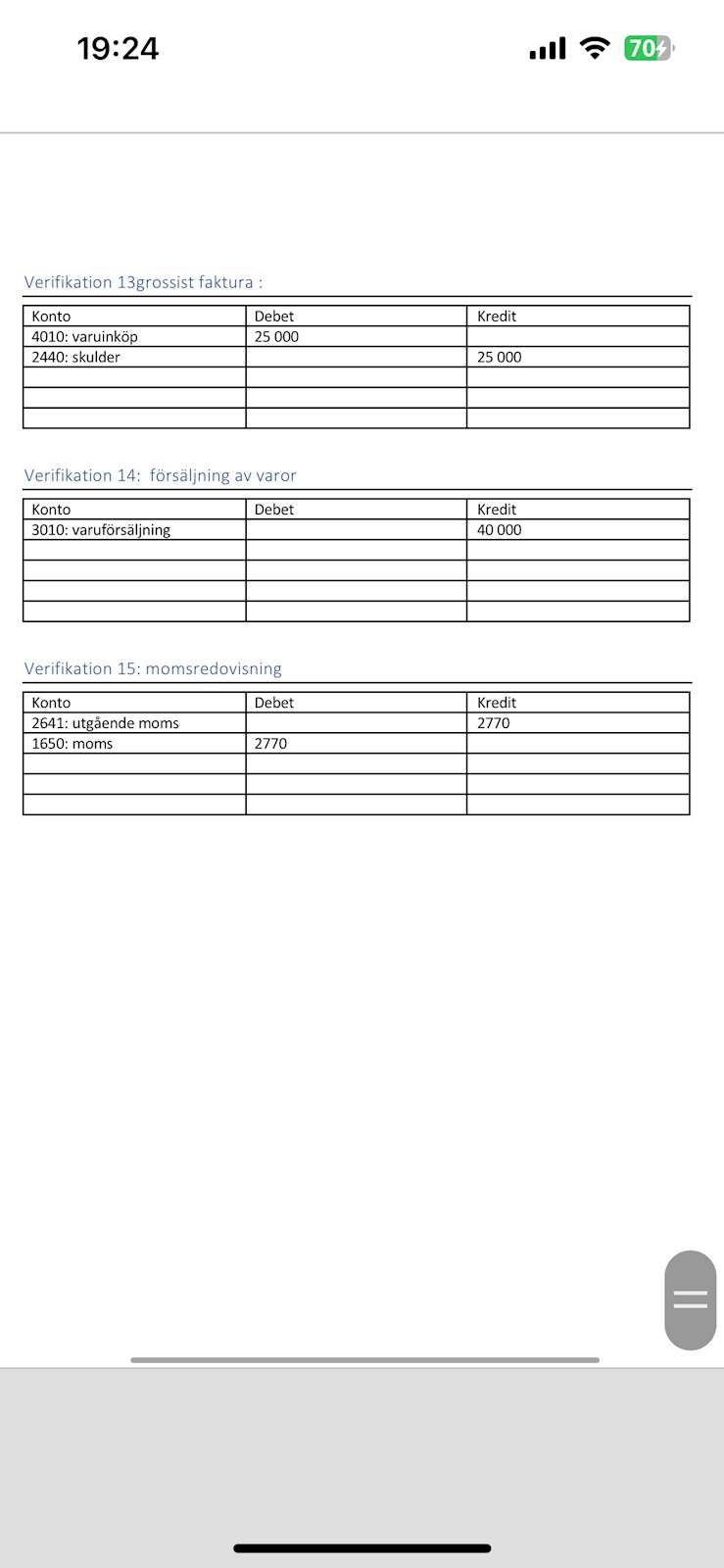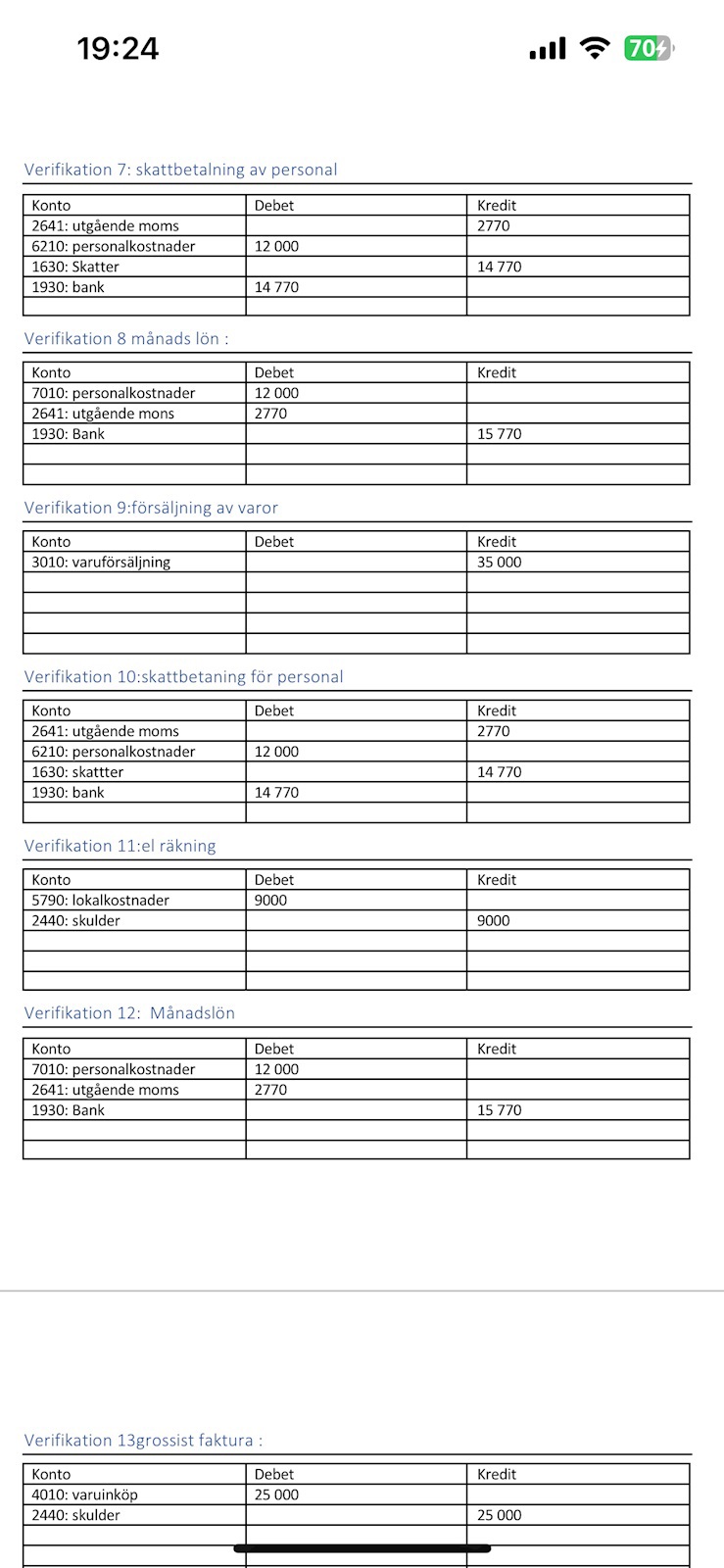 jag gjorde en bokföring, men nu behöver jag komplittera den men från 1-3 så är den rätt. Han sa att kolla från 4 neråt ser ni något fel?