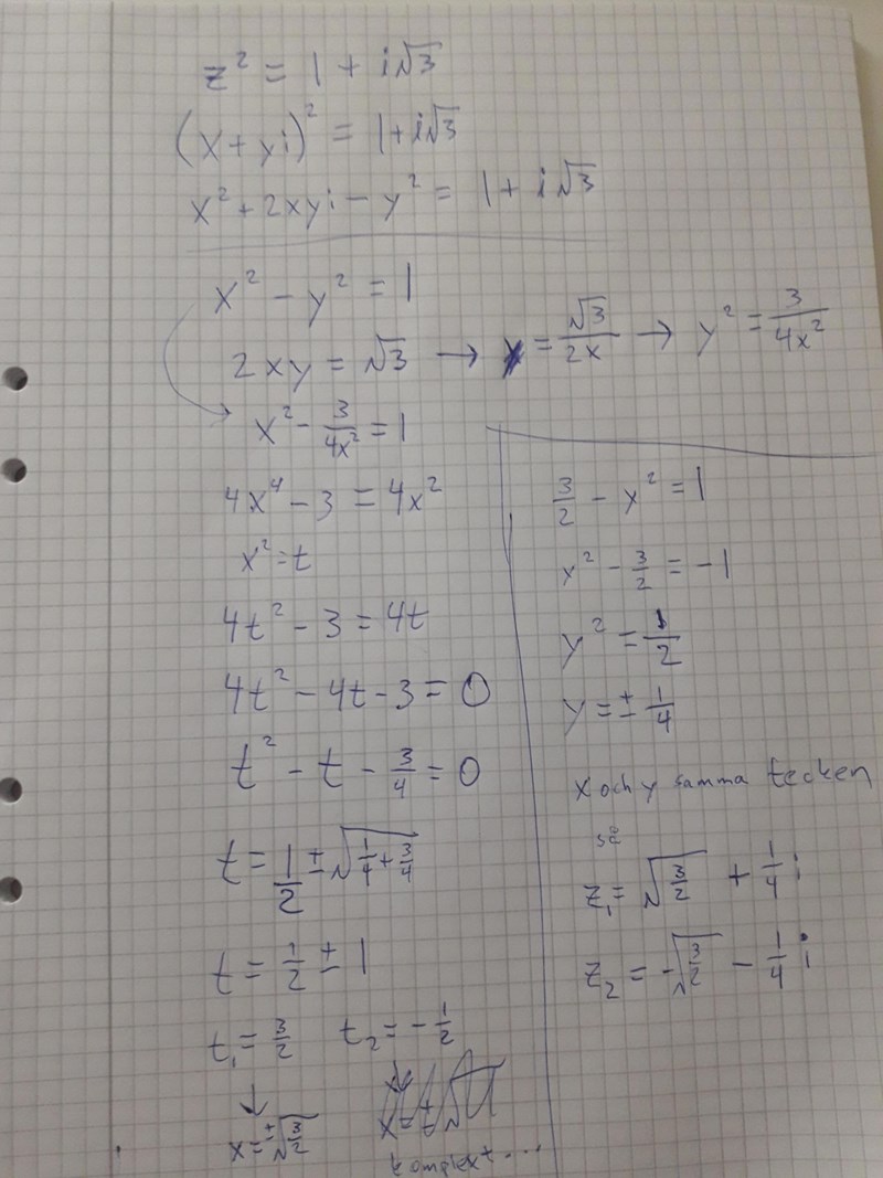 Hej! Det ska bli z = +-1/2(sqrt(6)+i*sqrt(2))