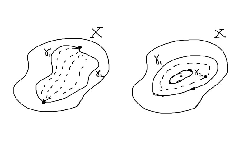 Om vi släpper kravet på att ändpunkterna ska vara samma i den första definitionen så kan varje öppen kurva deformeras till en punkt. Om är en kurva i något rum (tag om du vill) så kan vi definiera