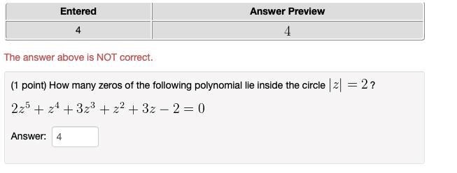 https://math.stackexchange.com/questions/375254/finding-the-number-of-zeros-of-a-function-in-a-given-annulus följer den här, och får 4. Men det är tydligen fel