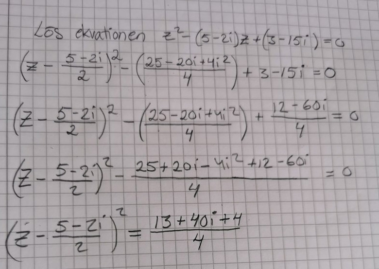 Jag får förresten högerledet till 9/4 + 10i, men jag kan ha fel.