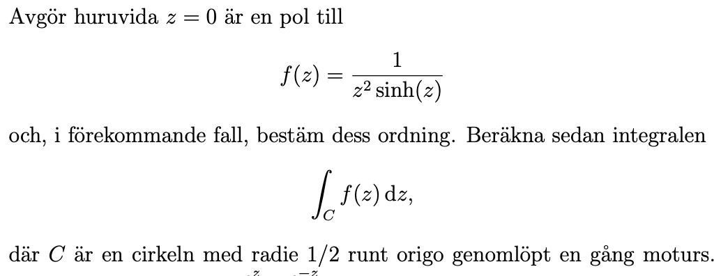 Men har fastnat på beräkning av kurvintegralen då jag inte riktigt får till min residyberäkning.