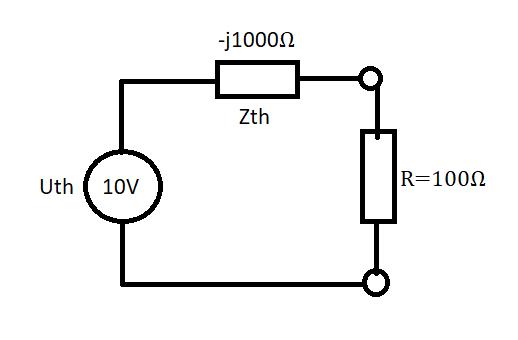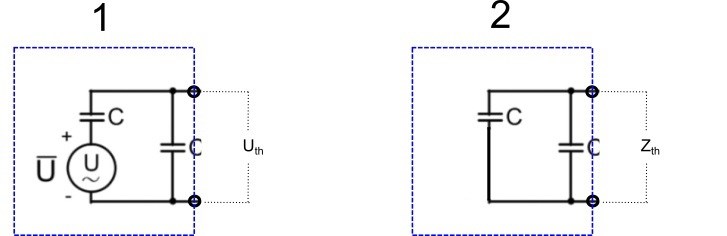2. Kortslut spänningskällan och och räkna ut impedansen blir över tvåpolens anslutningar. Zth blir också en komplex impedans.