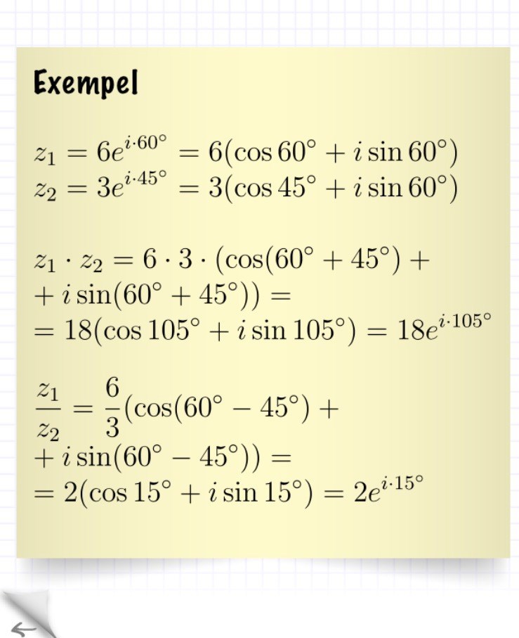 Har du lärt dig komplexa tal i polär form än? Det förklarar det hela.