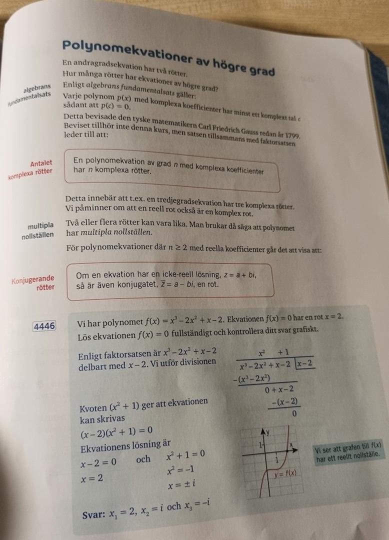 Jag fattar inte vad dem menar med komplex koefficient. Menar de bara att det ska vara t.ex 2i (komplext tal) bakom variabeln? Isåfall varför har dem i exempel uppgiften koefficienten -2? (Blåa bakgrund uppgift 4446)