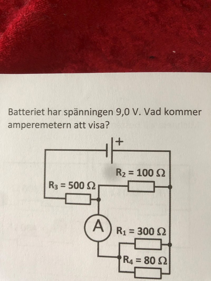 (Mätinstrumentet för ström antas ha noll motstånd.)